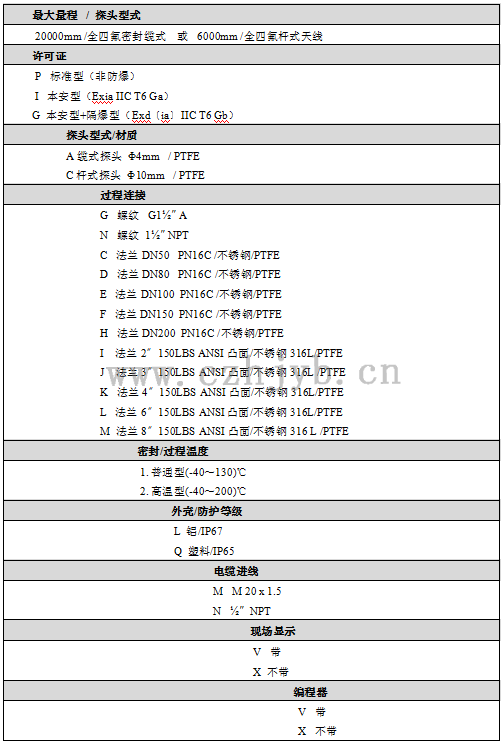 本產(chǎn)品的防爆形式為本質(zhì)安全型。防爆標(biāo)志:Exia IIC T6。本安型導(dǎo)波雷達(dá)物位計(jì)采用壓鑄鋁外殼材料,電子部件采用膠封 結(jié)構(gòu),從而確保電路部分故障時產(chǎn)生的火花不會泄放出來。本產(chǎn)品適用于Exia IIC T6 防爆等級以下可燃性介質(zhì)的物位連續(xù)測量。