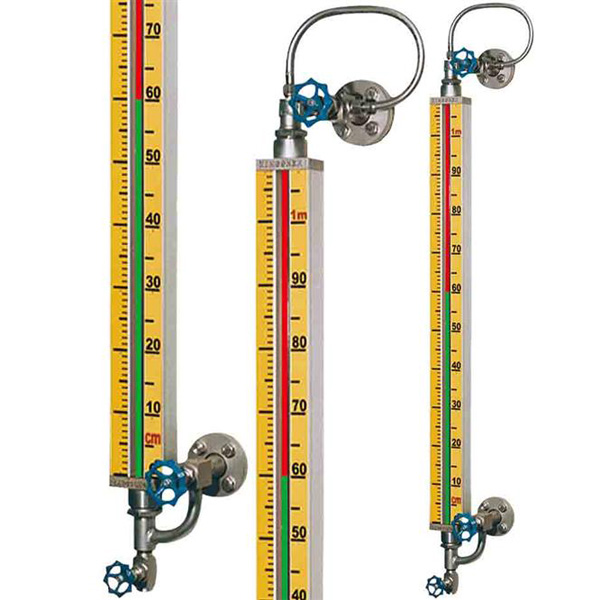 UGS玻璃管彩色液位計有石英玻璃管,殼體,上,下閥門組件等組成一個連接體。通過法蘭與儲罐上的法蘭的對接形成一個連通回路,根據(jù)邊通原理,液位計中液位高度就是容器內(nèi)液體的真實高度,液位計本體運用光學(xué)的透反原理,使有液部位呈現(xiàn)綠色,無液部位顯示紅色,從而是界面清晰,涇渭分明。也可根據(jù)用戶需求做成無盲區(qū)型、耐腐型等。